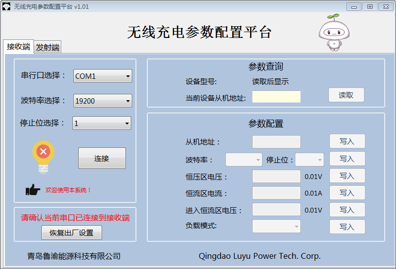 無線充電模塊輸出電壓和輸出電流的寬范圍(電壓:5-30V;電流:0-4A)可調(diào),提供了更為寬泛的輸出電壓和電流組合,應(yīng)用靈活性更高。通過“無線充電參數(shù)配置平臺”平臺軟件,用戶將產(chǎn)品通的信串口連接電腦就可以設(shè)置輸出參數(shù),這樣一個模塊電源就能夠兼容多種不同類型設(shè)備的使用。用戶設(shè)備在工作過程中也可以通過串口通信請求不同的充電電壓和充電電流,實現(xiàn)動態(tài)的輸出調(diào)整。